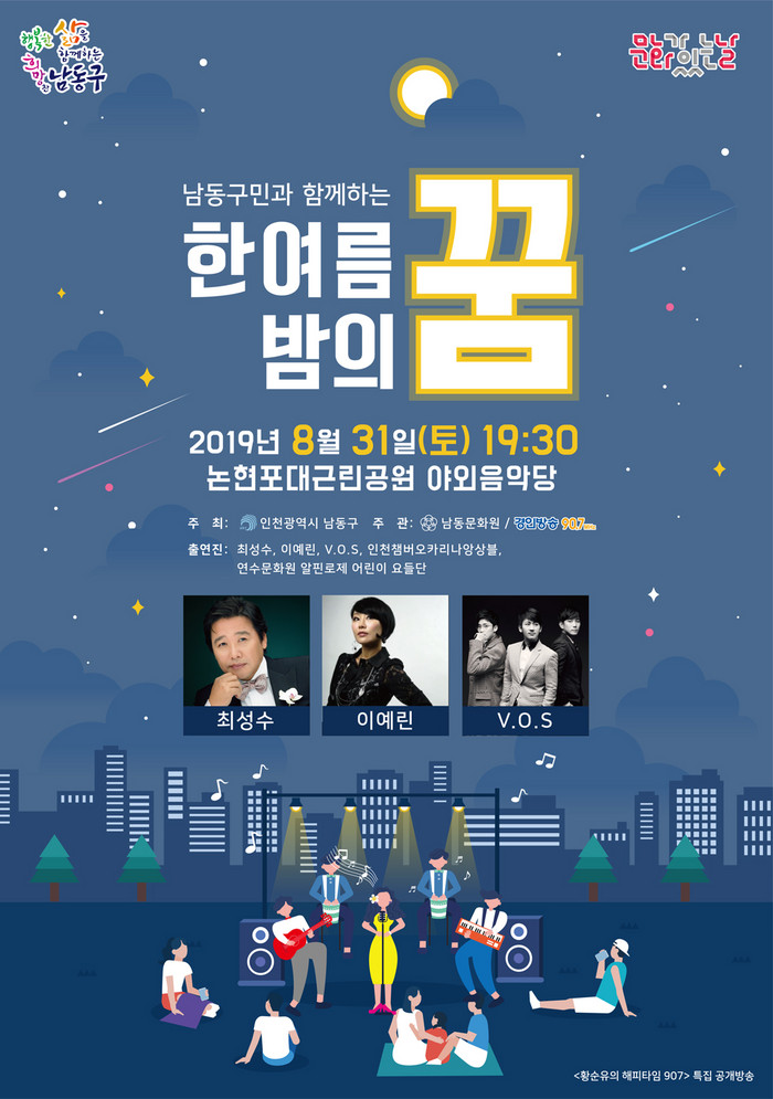 남동구 문화관광체육 관계자는 “가족들과 함께 한 즐거운 기억으로 남을 수 있는 공연이 될 수 있도록 알차게 준비하겠다”며 “여름밤 아름다운 추억이 되기를 바란다”고 말했다.