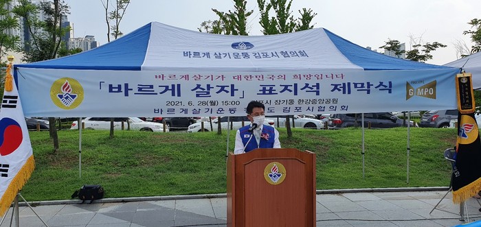 이 날 제막식에서는 임귀선 바르게살기운동 경기도협의회 회장을 비롯, 정하영 김포시장, 현영수 바르게살기운동 김포시협의회장 외 100여명이 참석해 성황리에 마무리됐다.