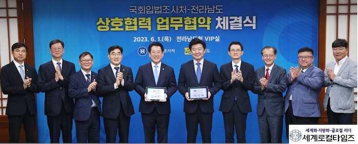 전남도와 국회입법조사처는 이날 지역소멸 대응 방안을 논의하고 전남도 현안 전반에 대해 상호협력을 제도화하는 업무협약도 했다. 두 기관은 지역 현안을 공동 연구하고, 정책화 및 입법 지원 등 협력을 지속해서 확대할 방침이다.