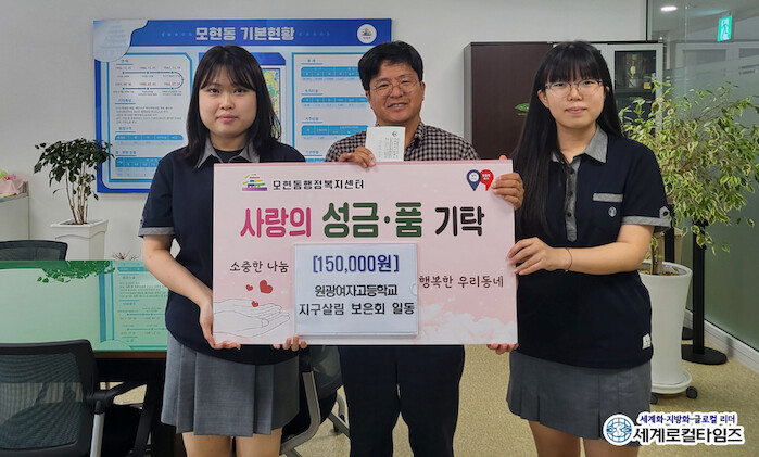 [세계로컬타임즈 조주연 기자] 고등학생들이 지구를 살리겠다며 성금을 마련해 어려운 이웃에게 전달했다.
