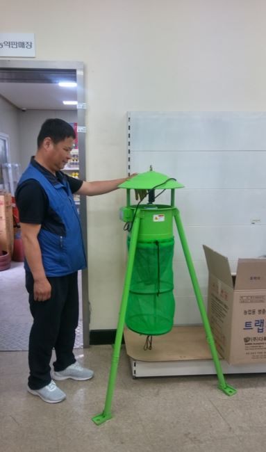 친환경 해충방제기는 자외선 별빛파장을 이용해 병해충만을 선별적으로 유인해 해충을 방제하는 기기로 농작물에 해를 입히는 각종 나방이나 벌레를 사전에 포획해 농작물 생육에 도움을 주고 농약을 살포하지 않아 안전한 친환경 농산물을 생산할 수 있다.