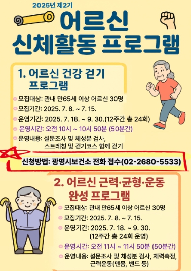 광명시, 어르신 대상‘제2기 신체활동 프로그램’참여자 모집