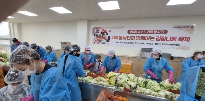 이번 봉사활동은 2025년 도민이 전하는 자원봉사2차 김장나눔 사업으로 선정된 6개 단체가“양주시 사랑의 김장나눔 릴레이”로 15일부터 경기북부영웅시대를 시작으로 16일 양주+인, 17일 양주상인회협동조합, 22일 아름다운회천사람들, 23일 둘이함께가족봉사단, 23일 양주F&V.6까지 200여명이 참여했고 10kg 김장김치 700여통을 관내 어려운 이웃들에게 배부했다.
