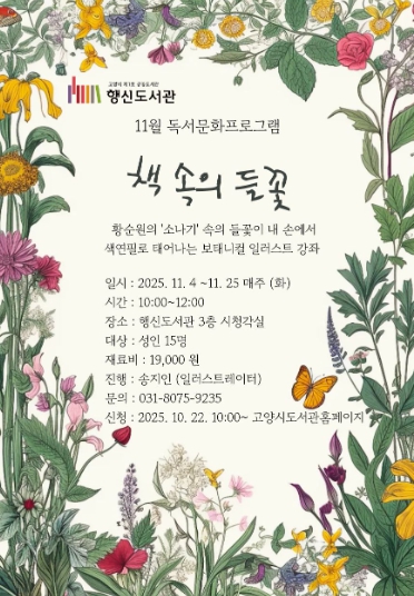 프로그램 신청은 10월 22일 10시부터 고양시 도서관 누리집을 통해 할 수 있으며, 성인 15명을 선착순으로 모집한다.