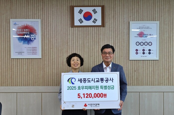 한편, 세종도시교통공사는 재난 및 재해 발생 시 피해 복구와 주민 지원을 위한 사회공헌 활동을 지속적으로 펼쳐왔으며, 앞서 지난 4월에도 영남지역 산불 피해 주민들을 위해 임직원 성금 5백만 원을 기부한 바 있다.