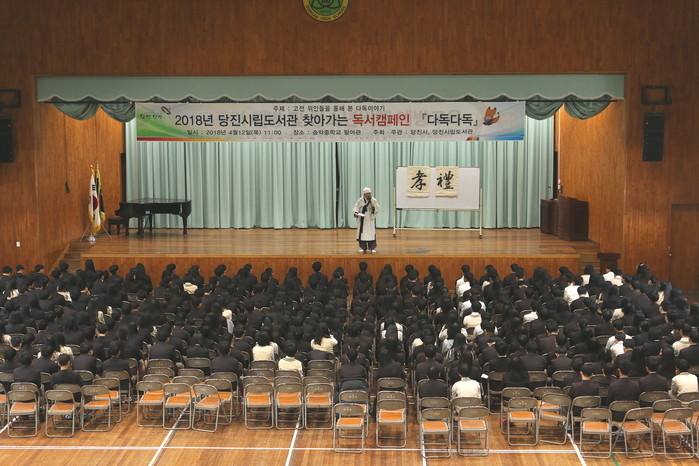 | ▲ 지난달 12일 충남 당진시 송악중학교에서'다독다독' 독서캠페인이 열리고 있다. |
