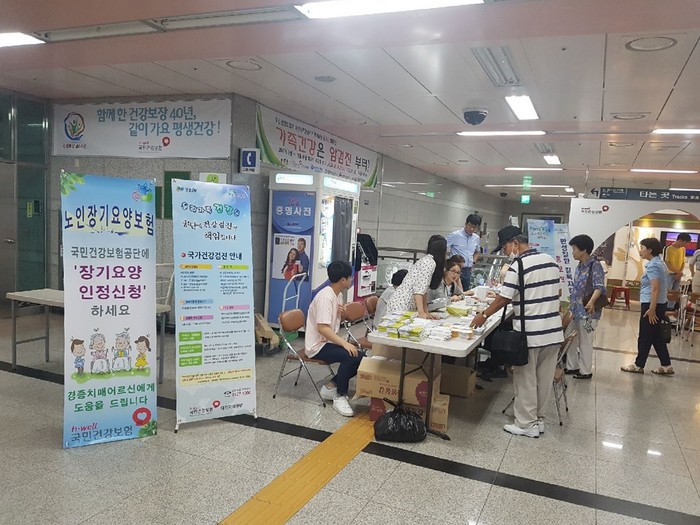 | ▲ 28일 대전 유성온천역 건강다솜방에서 국민건강보험공단 대전지역본부 관계자들이 시민들에게 국가건강검진 등을 안내하고 있다. <사진제공=국민건강보험공단 대전본부> |