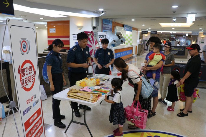 | ▲ 최근 부천시 웅진플레이 도시에서 휴가철 피서지 불법촬영 범죄를 근절하는 '빨간원'캠페인을 진행했다. (사진=원미경찰서 제공) |
