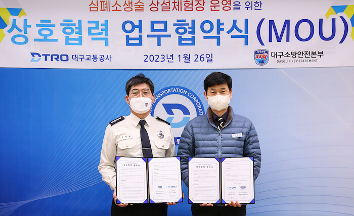 [세계로컬타임즈 이장학 기자] 대구소방안전본부와 대구교통공사는 26일 심폐소생술 교육 기회 확대를 위해 힘을 모으기로 협약했다.