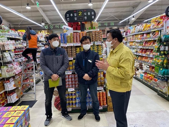 | ▲ 임병택 시흥시장이 확진자가 다녀간 마트를 방문하고있다. (사진=시흥시청 제공) |