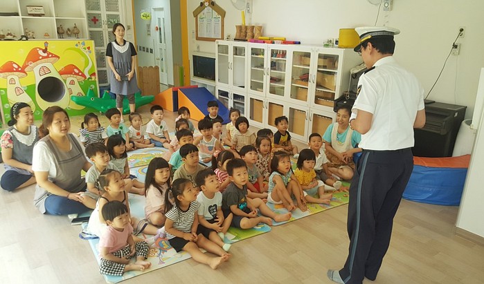 대전둔산경찰서 교통안전계(계장 이용구)는 이날 오전 서구 갈마동 소재 대전광역시립어린이집을 방문해 어린이 90명을 대상으로 교통안전교육을 진행했다.