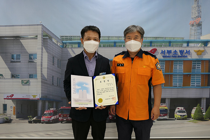 [세계로컬타임즈 민순혜 기자] 대전서부소방서는 의식을 잃고 쓰러진 80대 할아버지에게 심폐소생술을 실시해 소중한 생명을 구한 이상구(59)씨에게 17일 대전시장 표창을 수여했다.