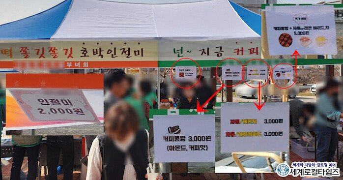 바자회라는 이름의 이 행사에 공산품과 중고물품 등의 판매가 이뤄지고 일부 천막에서는 떡과 빵을 구워 판매하고 음료를 조제해 판매하고 있었다. 하지만 무허가 식품 영업였다.