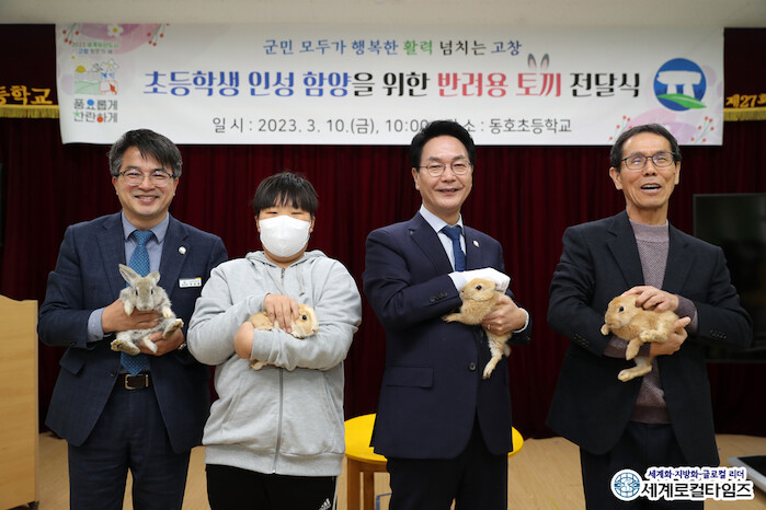 [세계로컬타임즈 조주연 기자] 전북 고창군이 지역 초등학교에 토끼를 전달했다.