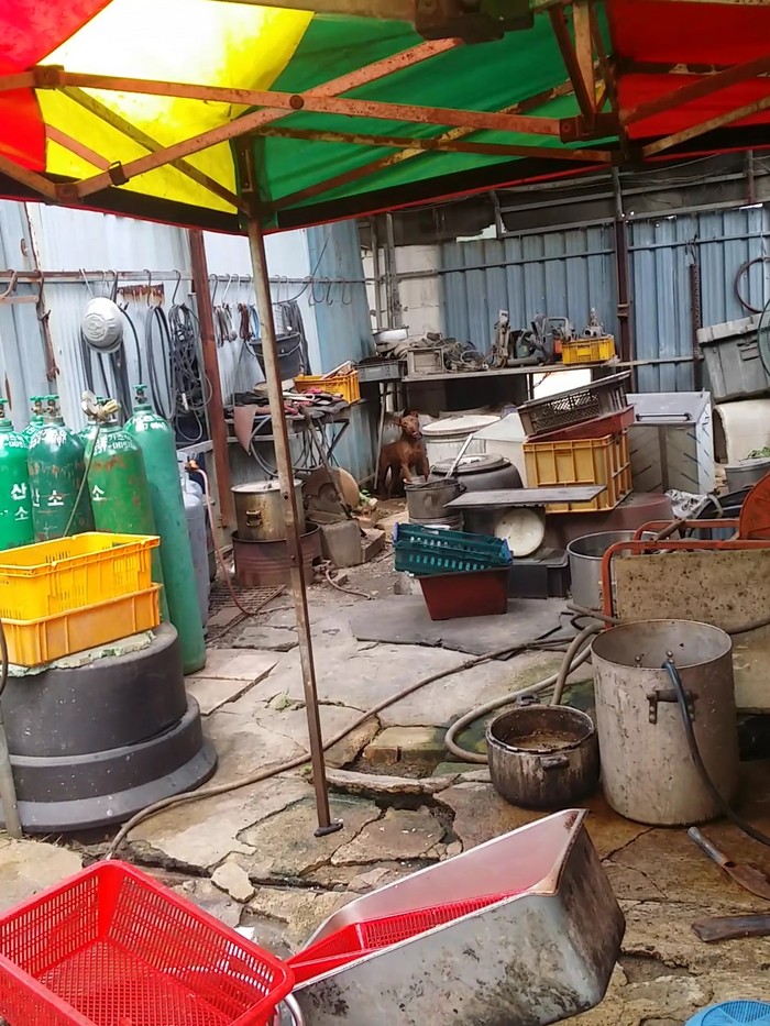 | ▲ 수원시 권선구 곡반정동 개 도살장 앞에 묶여 있는 개. |