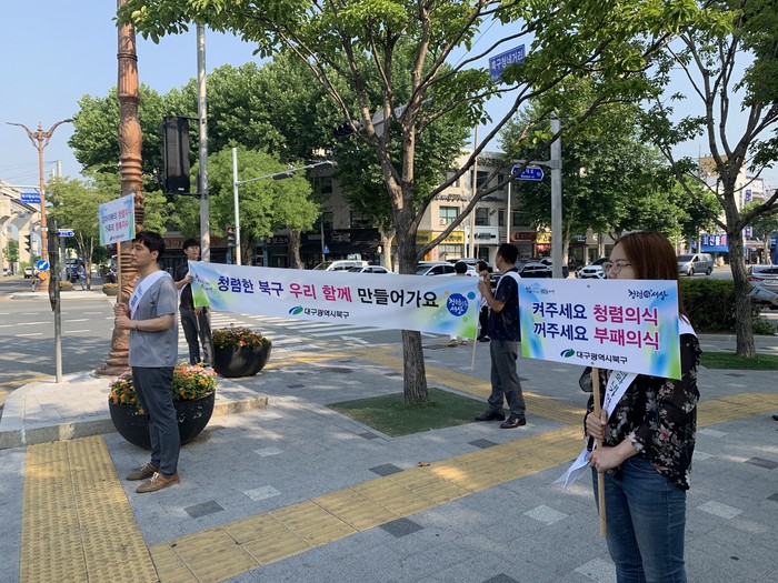 [세계로컬타임즈 최영주 기자] 대구 북구는 북구청 네거리와 구 청사 입구에서 주민과 공무원을 대상으로 반부패·청렴문화 확산을 위한 청렴실천 캠페인을 펼쳤다.