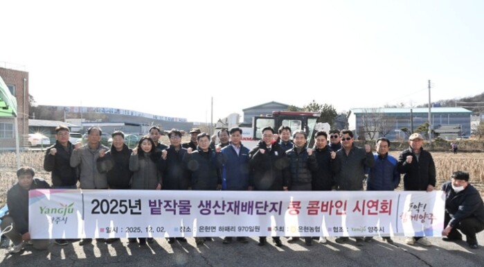 이번 시연회는 밭작물 생산단지의 규모화와 기계화를 통해 생산비를 낮추고 생산량을 높이기 위한 사업의 일환으로, 강수현 양주시장이 직접 콩 콤바인 시연에 참여해 작업 과정을 체험하고 농업인들과 의견을 나누는 소통의 시간을 가졌다.