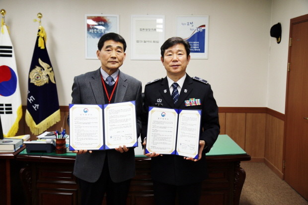 | ▲지난 18일 김진구 의정부교도소장(우측)은 의정부교도소 2층 소장 집무실에서 사단법인 이레복지선교회(이사장 김인홍)와 업무협약을 체결하고 있다. <사진제공=의정부교도소> |