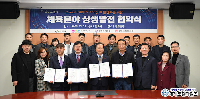 [세계로컬타임즈 조주연 기자] 전북 완주군이 체육계와 손잡고 직장운동경기부·전지훈련 방문 선수단 지원 등을 적극 활성화하기로 했다