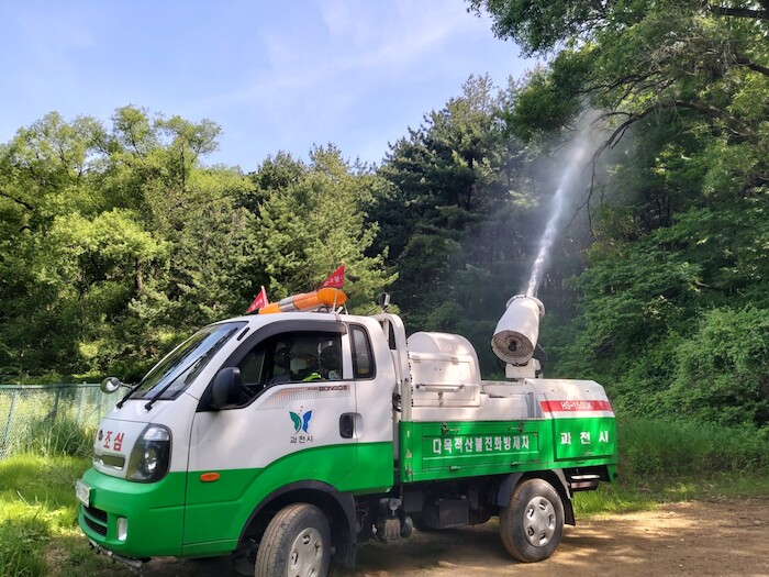 ▲과천시가 소나무재선충병 발생 지역에 대한 방제작업을 하고 있다.(사진=과천시)