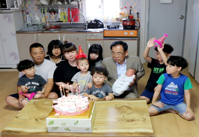 한편 지난 5월 25일에는 군서면 임혜선(여 37) 오기채(남 43)씨 부부가 몸무게 3.75kg의 건강한 사내아이를 낳아 아홉 아이들의 부모로 축하를 받은 바 있다.