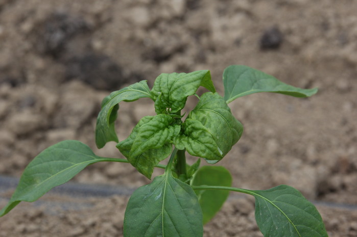 | ▲ 정식 후 고추 칼라병 피해증상. (사진=경북농업기술원) |