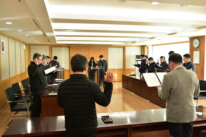 [세계로컬타임즈 이장학 기자] 대구도시개발공사는 30일 사장 및 부서장 등 9명이 참석한 가운데 공사사옥 3층 회의실에서 반부패 청렴·안전 서약식을 개최했다.