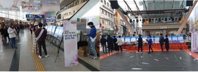 | ▲‘2019년 대구시정 베스트 10’ 선정을 위해 동대구역(왼쪽)과 동성로에서 투표를 실시하고 있다.(사진=대구시 제공) |