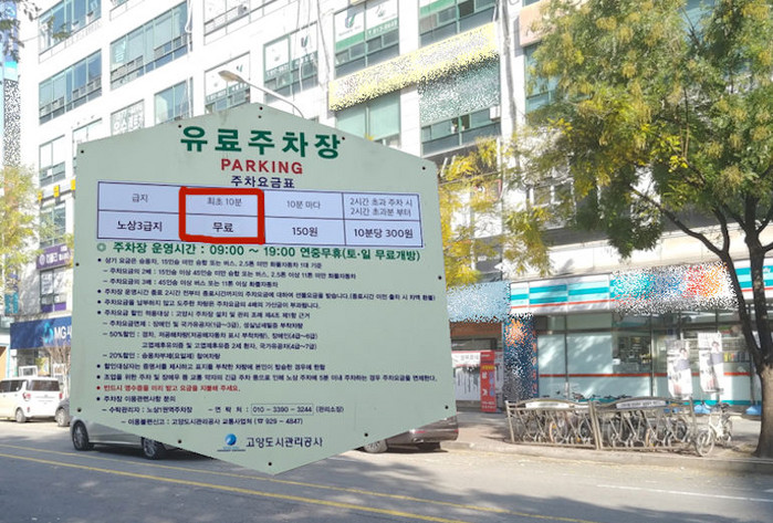 | ▲고양시는 자동차도로 노상주차장에 대해 소상공인 지원 등의 차원에서 최초 10분은 주차요금을 면제하는 조치를 했음에도 3개월이 지나도록 이를 모르는 경우가 많아 적극 홍보에 나서기로 했다. (사진=고양시 제공·그래픽=세계로컬타임즈 디자인팀) |