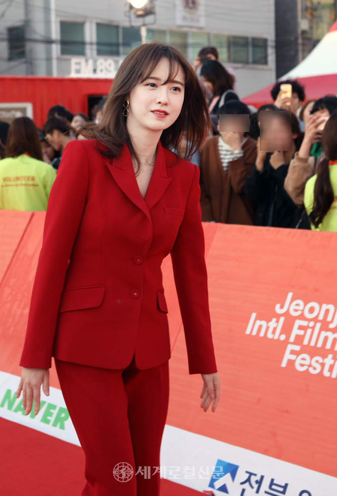 | ▲ 제19회 전주국제영화제 개막식을 찾은 배우이자 영화감독으로 활동 중인 구혜선 씨가 붉은 정장을 입고 레드 카펫을 통해 입장하고 있다. |