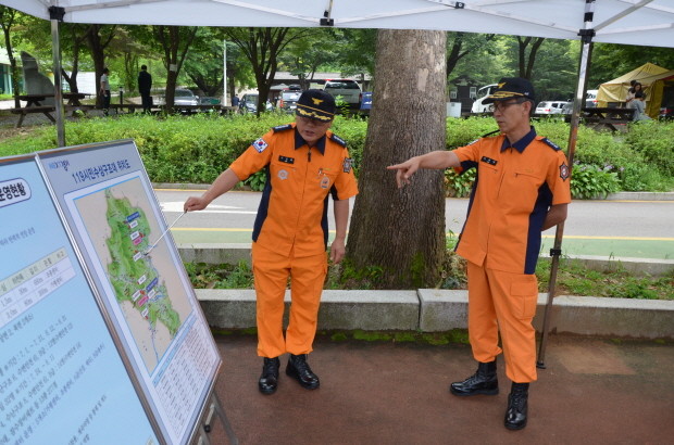 9일 오후 가평군 산장국민관광지를 찾은 이재열 재난안전본부장은 물놀이 안전관리 추진상황 현황에 대한 설명을 들은 후, 물놀이 안전시설 및 운영 실태를 확인하고 점검했다.