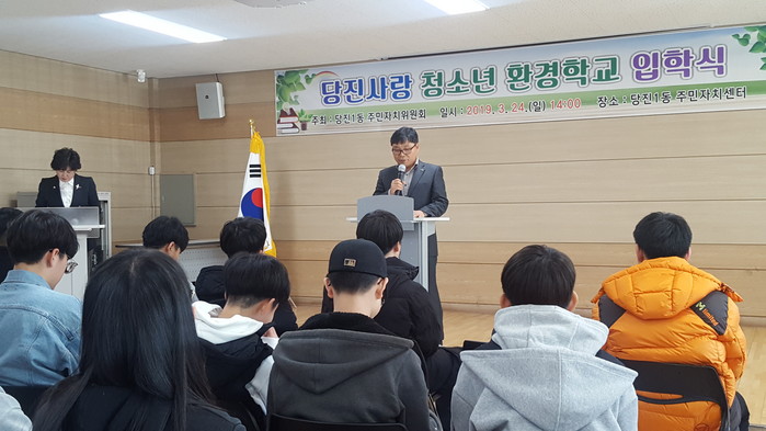 | ▲ 당진시 '당진사랑 청소년 환경학교' 입학식이 24일 당진1동 주민자치센터에서 열리고 있다. (사진=당진시 제공) |