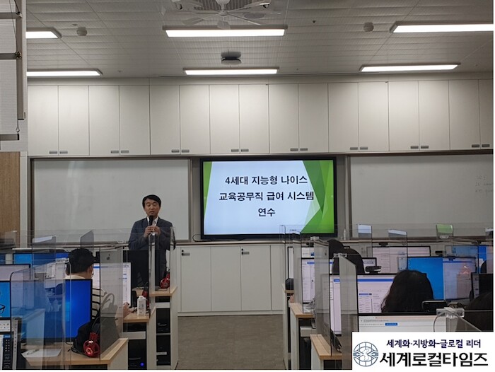 교육공무직 급여 업무담당자 130여 명을 대상으로 한 연수는 이번에 새로 도입된 4세대 지능형 나이스 급여 관련 시스템 사용 방법 등 업무 변화에 대응하는 실무(현장)중심의 직무역량 강화를 위해 마련됐다.
