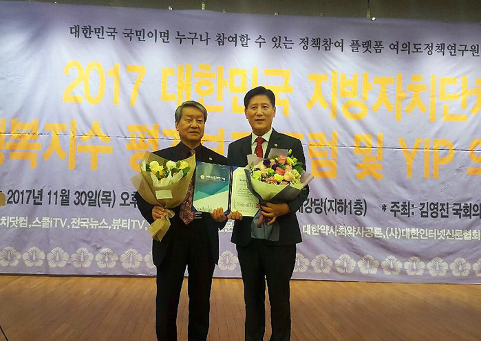 ‘지방자치평가 의정대상’은 여의도정책연구원에서 지방자치단체 행복지수평가를 바탕으로 지방자치의회 의원들의 조례입안 및 지역정책 기여도 등을 공정하고 객관적으로 심사해 수상자를 선정한다.