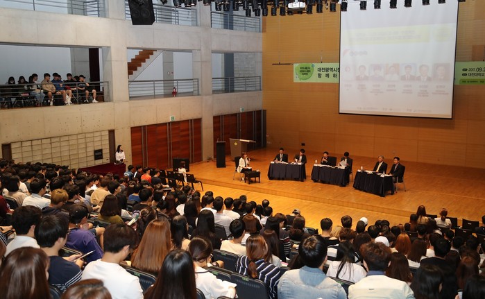 대전시는 21일 대전대학교와 함께 대학 혜화문화관 블랙박스홀에서 대학생 등 500여명이 참여한 가운데 ‘대전시장과 함께하는 토크콘서트’를 개최했다고 밝혔다.