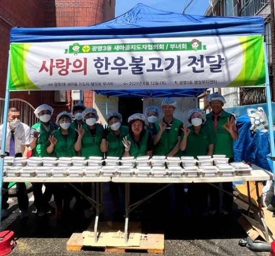 이날 새마을 회원 20여 명은 이른 아침부터 광명3동 행정복지센터에 모여 정성스럽게 불고기를 준비했으며, 이를 관내 취약계층 50가구에 전달했다.