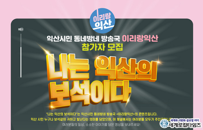 [세계로컬타임즈 조주연 기자] 전북 익산시민이 만들어가는 동네방네 방송국 ‘이리랑 익산’에서 유튜버 크리에이터를 모집한다.