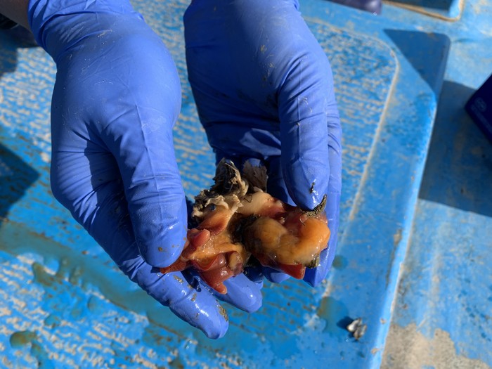 | ▲ 멍게 본양성에 성공한 멍게에 속살이 꽉 차 있다. (사진=경북도 제공) |
