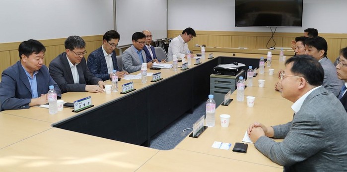 | ▲ 31일 대전 과학경제국회의실에서 글로벌 강소기업 CEO 및 관계자 20여명이 모여 간담회를 열고 있다. <사진제공=대전시> |