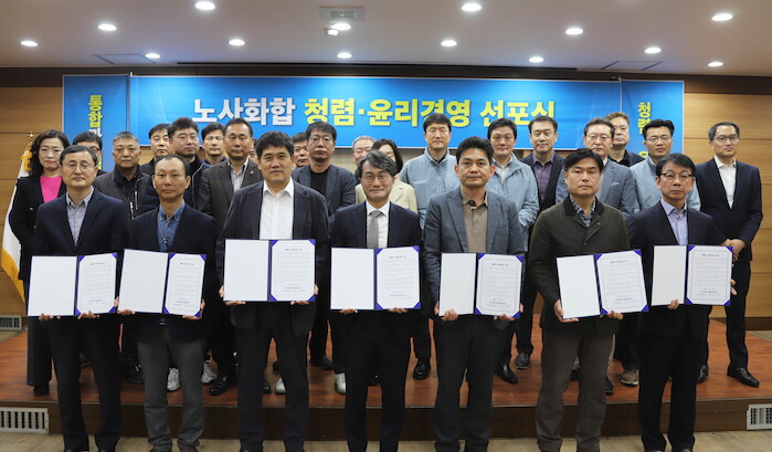 선포식은 직원대표의 ‘노사화합 청렴·윤리경영 실천 선포문’의 선언과 참여직원의 부패방지 및 청렴 실천 서약서 서명에 이어 청렴 소통 리더십을 주제로 한 청렴 교육 순으로 진행됐다.