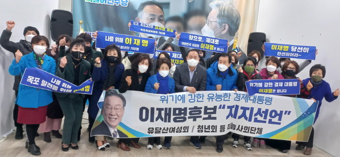 | ▲목포지역 유달산 여성회 이재명 대선후보 지지 선언 동참(사진=더불어민주당목포지역위원회) |