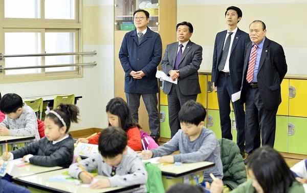 [세계로컬신문 김정태 기자] 세종시의회 교육위원회 의원들이 21일 첫마을에 위치한 참샘초등학교와 조치원읍의 세종고등학교를 방문해 스마트 TV형 칠판의 차이점과 장단점에 대해 질의하고 무상급식과 수익자 부담 급식 간의 질 차이점을 점검하고 있다.