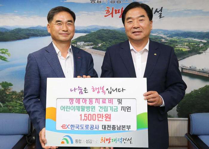 [세계로컬신문 라안일 기자] 한국도로공사 대전충남본부가 5일 대덕구를 방문해 장애아동 치료비 1000만원과 어린이재활병원 설립기금 500만원을 기탁했다.