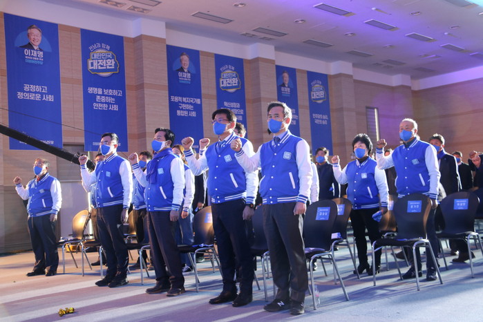 송영길 당 대표는 축사를 통해 “이재명 후보가 승리하여 새 정부가 출범하면 이 후보의 강력한 추진력과 우리 당의 국회 과반의석으로 민주 대개혁을 이끌어낼 수 있는 절호의 기회다”며 승리의 길에 함께 나서자”고 요청했다.