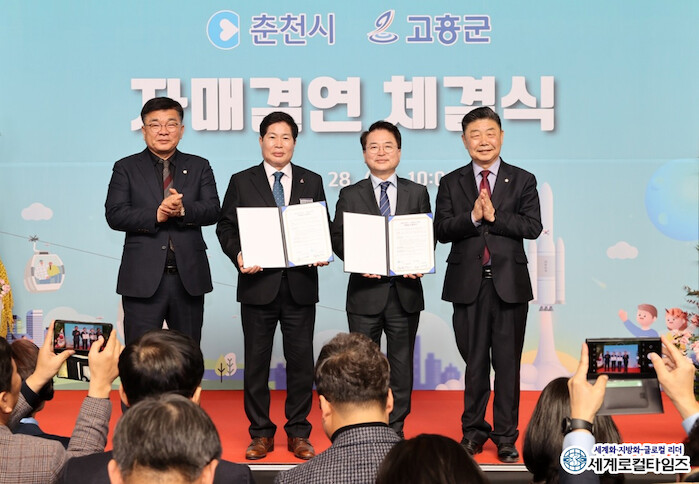 [세계로컬타임즈 조주연 기자] 전남 고흥군과 강원 춘천시가 상생발전을 위한 자매결연 협약을 체결했다.