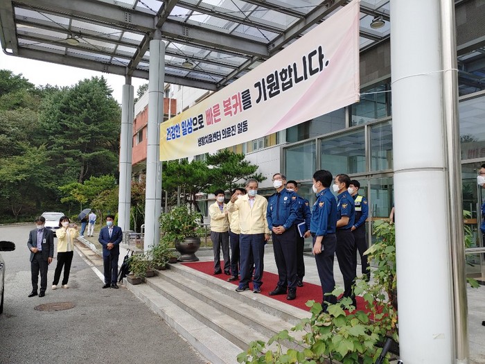 코로나19 사회적 거리두기 2단계가 시행되고 있는 가운데 센터를 방문한 윤동춘 경북지방경찰청장은 “코로나19 극복을 위한 방역적 치안활동은 물론 생활치료센터가 안정적으로 운영될 수 있도록 노력해 줄 것”을 당부하며 현장 근무자들의 노고를 격려했다.