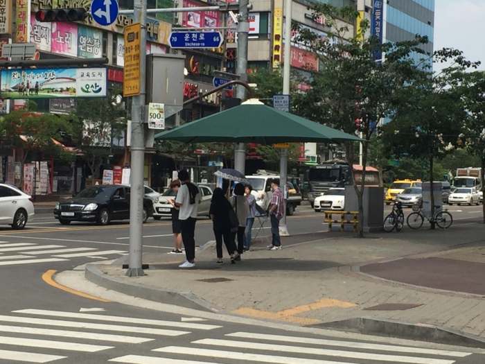 | ▲ 오산시 운천로 횡단보도에 설치된 그늘막. |