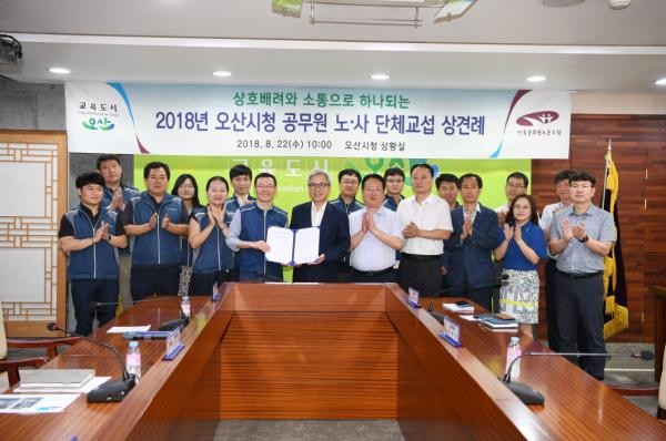 곽상욱 시장은 “노사는 대립과 갈등의 관계가 아니라 시민의 희망과 행복을 위해 함께 노력하는 협력과 배려의 동반자”라며 “노사가 상생.협력 관계를 만드는 단체교섭이 되도록 노력하고 합의된 사항을 법령과 예산 범위 안에서 적극적으로 지원하겠다”고 말했다.