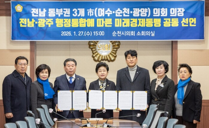 3개 시의회 의장은 “여수·순천·광양은 이제 경쟁이 아닌 연대를 통해 전남동부권 공동 번영의 길을 열어갈 것”이라며, “행정통합이 어느 한 지역만이 아닌 전남 전역과 광주가 함께 성장하는 진정한 균형발전 모델이 될 수 있도록 공동의 목소리로 협력해 갈 것”이라고 밝혔다.