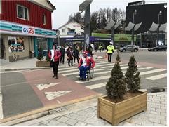 | ▲ 휠체어 이동을 위해 턱을 낮추고 경사로 설치한 대관령면 건널목. <사진제공=평창군청> |